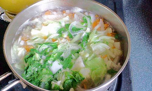 キャベツ、セロリ、大根、ニンジン、たまねぎ、シイタケ、マイタケ、にんにく・・・